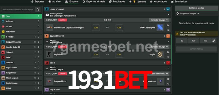 O 1931Bet oferece uma grande seleção de opções de apostas em e-sports com probabilidades competitivas